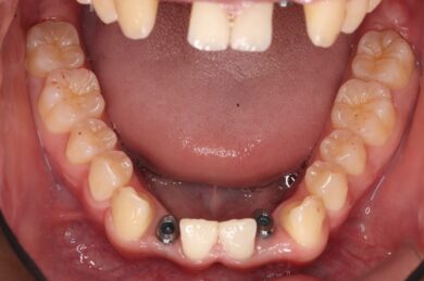 インビザラインによる術前矯正と下顎先欠歯2本のインプラント症例