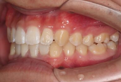 - 矯正治療途中で、白い樹脂(レジン)を使って、歯の形態修正を行う可能性があります。また、エナメル質を削って隙間を作ったり、抜歯を行う可能性もあります。