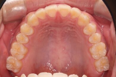 初めにマウスピース矯正「インビザライン」による術前矯正を11か月行いました。各隙間を寄せ、インプラントを埋入するスペースを確保し、適切な咬合関係を確立します。