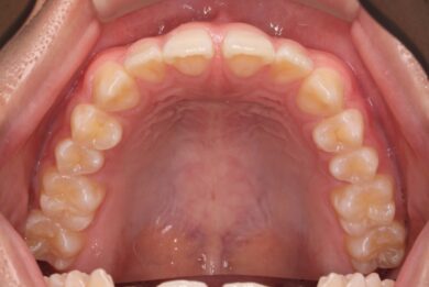 初診時、下顎だけでなく、上顎の正中(真ん中)にも空隙(隙間)がありました。
